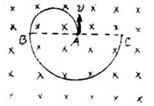 如图所示,有一电量为q的正离子,从A点沿箭头方向开始运动,运动半周到B点时,突然吸附若干电子,接着又运动半周到C点,已知BC=2AB,磁感线方向垂直指向纸内,电子质量远远小于离子质量重力不计,则离子在B处吸附的电子数为(磁场为匀强磁场)( )