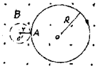 如图所示,一带正电的微粒(重力不计),在垂直于匀强磁场的平面做匀速圆周运动,半径为R,方向顺时针,当微粒运动到A点时突然分裂为质量为1:3的两部分,但电量恰平分,已测出较小的部分在原平面内做半径r=R/2,方向为顺时针方向的匀速圆周运动(虚钱圆),则质量较大的部分做圆周运动的半径为 。