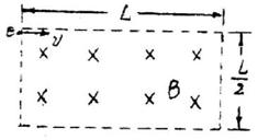 如图所示,矩形虚线内为匀强磁场区域。长边长为L,短边长为L/2。磁场的磁感应强度为B,一电子(质量为m,电量为e)贴着上方边界射入磁场,射入时速度方向与短形长边平行,欲使电子由下面长边边界穿出磁场,求: