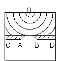 如图所示观察水面波衍射的实验装置,AC和BD是两块挡板AB是一个小孔,O是波源,图中已画出波源所在区域的传播情况,每两条相邻的波纹(图中曲线)之间距离表示一个波长,则对于波经过孔之后的传播情况,下列描述正确的是( )