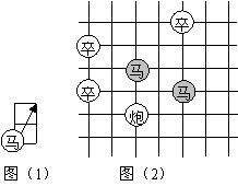 8.图(2)是中国象棋棋盘的一部分,图中红方有两个马,黑方有三个卒子和一个炮,按照中国象棋中马的行走规则(马走日字,例如:按图(1)中的箭头方向走),红方的马现在走一步能吃到黑方棋子的概率是多少?