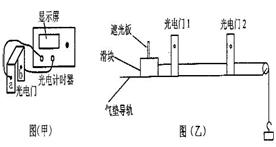 与打点计时器一样,光电计时器也是一种研究物体运动情况时常用的计时仪器,如图(甲)所示,a、b分别是光电门的激光发射和接收装置。现利用如图(乙)所示的装置验证“机械能守恒定律”。方法是:在滑块上安装一遮光板,把滑块放在水平放置的气垫导轨上,通过跨过定滑轮的细绳与钩码相连,连接好1、2两个光电门,在图示位置释放滑块后,光电计时器记录下滑块上的遮光板先后通过两个光电门的时间分别为△t1、△t2。已知滑块(含遮光板)质量为M、钩码质量为m、两光电门间距为s、遮光板宽度为L、当地的重力加速度为g。