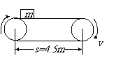所示,皮带的速度是3m/s,两轴心距离s=4.5m,现将m=1kg的小物体轻轻放在左轮正上方的皮带上,物体与皮带间的动摩擦因数为μ=0.15。电动机带动皮带将物体从左轮运送到右轮正上方的过程中,电动机消耗的电能是多少?