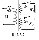 如图5-3-7,理想变压器有两个副线圈,匝数分别为n1和n2,所接负载4R1=R2,当只闭合S1时,电流表示数为1A,当S1和S2都闭合时,电流表示数为2A,则n1∶n2