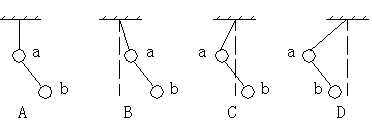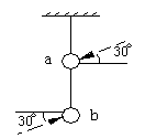 例⒍如图,用轻质细线把a、b两个小球悬挂起来,今若分别对a、b两端施加向左偏下30º和向在偏上30º的同样大小的恒力,则最终平衡时两球的位置如下图--------( )