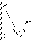 例⒏如图所示,物体的质量为2kg,两根轻绳AB、AC的一端连接于竖直墙上,另一端系于物体上,AC绳水平,AB绳与水平方向成θ=60º,在物体上施加一个方向与水平方向成θ=60º的拉力F,若使绳都能伸直,求拉力F的大小范围?