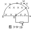 5.如图3-9-19所示,在磁感强度为B的匀强磁场中,有半径为r的光滑半圆形导体框架,OC为一能绕O在框架上滑动的导体棒,OC之间连一个电阻R,导体框架与导体电阻均不计,若要使OC能以角速度ω匀速转动,则外力做功的功率是______.