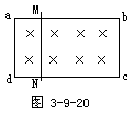6.图3-9-20所示是用金属导线制成一矩形框架abcd,其中ab=cd=2ad=2bc=2l=2m,框架放在水平面上,磁感强度为B=1T的匀强磁场垂直于框架平面竖直向下,用同样的金属导线MN垂直于ab和cd,从ad处开始以v0=0.5m/s的速度匀速向右运动,已知该金属导线每米电阻为0.1Ω,求在MN从ad向bc运动的过程中: