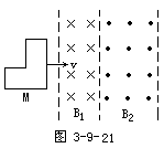 7.如图3-9-21所示,B1 、B2垂直于纸面,且B1<B2,当闭合回路M以速度v匀速地穿过两个匀强磁场区时,画出回路中产生的感应电流随时间变化的图像.