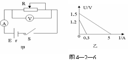 (1)该同学设计了如图4-2-6甲所示的电路来分别测量新旧干电池的电动势和内阻,并将测量结果描绘成如图乙所示的U-I 图像,由图线可知:新电池电动势E1= V,内阻 r 1 = Ω;旧电池电动势E2 = V;内阻 r 2 = Ω.