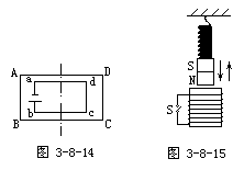 2.弹簧上端固定,下端挂一只条形磁铁,使磁铁上下做简谐振动.若在振动过程中把线圈靠近磁铁,如图3-8-15所示,观察磁铁的振幅,将会发现: [ ]