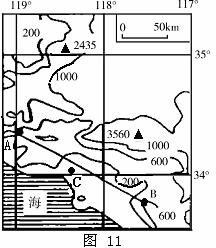 27.图11是世界某地的等高线分布图,读图回答下列问题。(10分)