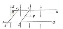 足够长的光滑金属导轨MN、PQ水平平行固定,置于竖直向上的匀强磁场中,在导轨上放两条金属杆ab、cd,两杆平行且与导轨垂直接触良好。设导轨电阻不计,两杆的电阻为定值。从某时刻起给ab施加一与导轨平行方向向右的恒定拉力F作用,则以下说法正确的是 ( )