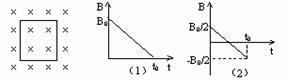 如图所示,矩形线圈处于匀强磁场中,当磁场分别按图(1)图(2)两种方式变化时,t0时间内线圈产生的电能及通过线圈某一截面的电量分别用W1、W2、q1、q2表示,则下列关系式正确的是( )
