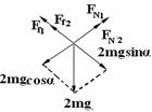 A.F1sinθ+F2cosθ=mg sinθ,F2≤mg