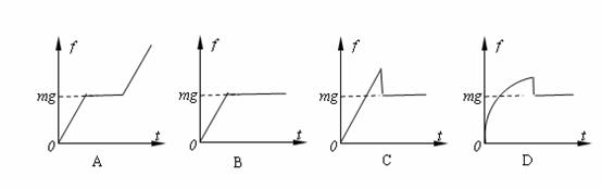 例题3.如图1-16所示,在方向竖直向下的匀强磁场中,有两根竖直放置的平行金属导轨ABCD。导轨上放有质量为m的金属棒MN,棒与导轨间的动摩擦因数为μ。现从t=0时刻起,给棒通以图示方向的电流,且电流强度与时间成正比,即I=kt,其中k为恒量。若金属棒与导轨始终垂直,则在下图所示的表示棒所受的摩擦力随时间变化的四幅图中,正确的是( )