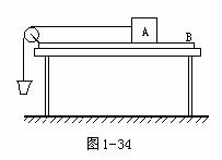 14.为了测量两张纸之间的动摩擦因数,某同学设计了一个实验:如图1-34所示,在木块A和木板B上贴上待测的纸,B木板水平固定,砂桶通过细线与木块A相连,调节砂桶中砂的多少,使A匀速向左运动。测出砂桶和砂的总质量m,以及贴纸木块A的质量M,则两纸间的动摩擦因数μ=m/M。