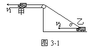 解析:如图3-2所示,甲、乙沿绳的速度分别为v1和v2cosα,两者应该相等,所以有v1∶v2=cosα∶1