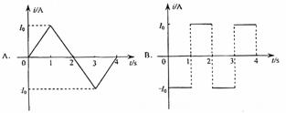 .由右手定则可得,当线圈沿x正方向运动时,产生的感应电流在图(a)中是向下经过电珠L的.故可得到如图所示的电流随时间变化的图象.