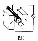 一种测量血管中血流速度仪器的原理如图8所示,在动脉血管左右两侧安装电极并连接电压表,设血管直径是2.00mm,磁场的磁感应强度为0.080T,电压表测出的电压为0.10mV,则血流速度大小为