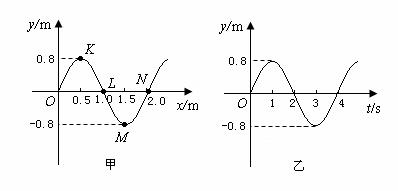 质点N的振幅是 m,振动周期为 s,图2乙表示质点 (从质点K、L、M、N中选填)的振动图象。该波的波速为 m/s。