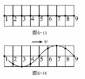 例2(2006年上海) 在均匀介质中选取平衡位置在同一直线上的9个质点,相邻两质点的距离均为L,如图6-13所示,一列横波沿该直线向右传播,t=0时到达质点1,质点1开始向下运动,经过时间Δt第一次出现如图6-14所示的波形.则该波的( )