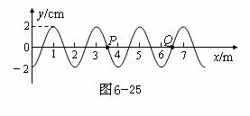 13.沿x轴正方向传播的简谐横波在t=0时的波形如图6-25所示,P、Q两个质点的平衡位置分别位于x=3.5 m和x=6.5 m处。在t1=0.5 s时,质点P恰好此后第二次处于波峰位置;则t2=_________s时,质点Q此后第二次在平衡位置且向上运动;当t1=0.9 s时,质点P的位移为_____________cm。