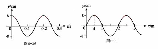 周期时,位于原点的质点离开平衡位置的位移是 cm。图6-27为该波在某一时刻的波形图,A点位于x=0.5m处。④该波的传播速度为 m/s;⑤经过