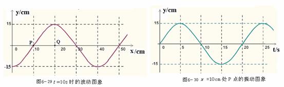 16.图6-29为某波动在t =10s时的图像,图6-30为图1中x =10cm处P点的振动图像。根据图示信息回答下列问题。