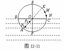 某研究小组的同学根据所学的光学知识,设计了一个测量液体折射率的仪器。如图12-11所示,在一个圆盘上,过其圆心O做两条互相垂直的直径BC、EF。在半径OA上,垂直盘面插上两枚大头针P1、P2并保持P1、P2位置不变,每次测量时让圆盘的下半部分竖直进入液体中,而且总使夜面与直径BC相平,EF作为界面的法线,而后在图中右上方区域观察P1、P2的像,并在圆周上插上大头针P3,使P3正好挡住P1、P2的像。同学们通过计算,预先在圆周EC部分刻好了折射率的值,这样只要根据P3所插的位置,就可以直接读出液体折射率的值。在用此仪器测量液体的折射率时,下列说法正确的是( )