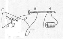 (12分)某同学做了一个小实验,在一个较长的铁钉上,用漆包线绕上两个线圈A 和B,线圈A 与干电池连接,线圈B 的两端接在一起,并把CD 段漆包线放在静止的自制指南针的上方,如图所示。当干电池给线圈通通电的瞬间,从上向下看(俯视) 指南针将________偏转(填顺时针或逆时针)。