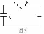 4. 如图2为一电池、电阻R和平行板电容器C组成的串联电路,在增大电容器两极板间距离的过程中( )