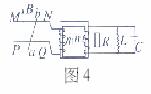 如图4所示,MN和PQ为两光滑且电阻不计的水平金属导轨,N、Q接理想变压器,理想变压器的输出端接电阻元件R、电感元件L、电容元件C。今在水平金属杆部分加一竖直向上的匀强磁场,则下列说法正确的是(