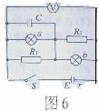 如图6所示的电路中,闭合电键S后,灯a和灯b都正常发光,后来由于某种故障使灯b突然变亮,电压表读数增加,由此推断,这故障可能是( )