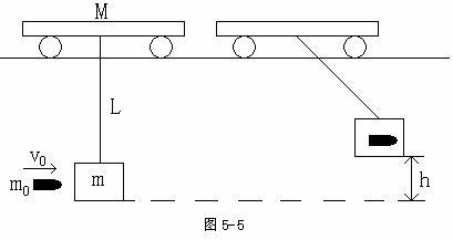 此后由天车、沙箱和子弹组成的系统机械能守恒,当沙箱上摆到最高点时,系统具有相等的水平速度,损失的动能转化为沙箱的重力势能,运用“子弹打木块”的结论,