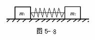 例2如图5-8所示,滑块A、B的质量分别为m1与m2,m1<m2,由轻质弹簧相连接置于水平的气垫导轨上,用一轻绳把两滑块拉至最近,使弹簧处于最大压缩状态后绑紧。两滑块一起以恒定的速率v0向右滑动。突然轻绳断开,当弹簧伸至本身的自然长度时,滑块A的速度正好为0。求: