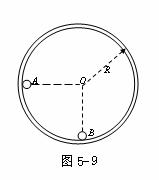 如图5-9所示,半径为R的光滑圆形轨道固定在竖直面内。小球A、B质量分别为m、βm(β为待定系数)。A球从左边与圆心等高处由静止开始沿轨道下滑,与静止于轨道最低点的B球相撞,碰撞后A、B球能达到的最大高度均为