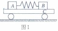 如图1所示,A、B两物体质量比为1:2。原来静止在平板小车C上,A、B之间有一根被压缩了的弹簧,A、B与车面间的动摩擦因数之比为2:1,平板小车C与地面之间的摩擦不计,当弹簧释放后,若弹簧释放时弹力大于两物体与车间的摩擦力,则下列判断中正确的是( )