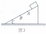 如图3所示,斜面上除了AB段粗糙外,其余部分均是光滑的,小物体与AB段的动摩擦因数处处相等,今使该物体从斜面的顶端由静止开始下滑,经过A点时的速度与经过C点时的速度相等,已知AB=BC,则下列说法正确的是( )