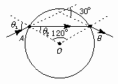 解析:如图4所示,是光线在玻璃球内的光路图,A、C为折射点,B为反射点,作OD平行于入射光线,由数学知识可得:![]()