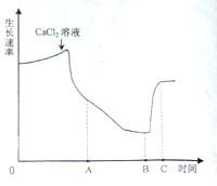 (3)由图分析可知,使用CaCl2后生长速率将下降,因此,一定浓度CaCl2的溶液对细
