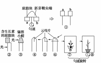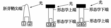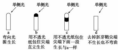 9. 下图是关于燕麦胚芽鞘向光生长的一组实验,根据结果分析最可能的结论是 ( )