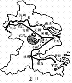 材料二:长江三角洲地区主要旅游城市分布图