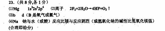23.(1)C:钠 E:1s22s22p63s23p5。(2) Na+ [ O H]- (3)O2-﹥Na+﹥Al3+