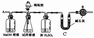 (1)A装置中NaOH溶液的作用是__________ _______,若直接向试样溶液中鼓人空气会导致实验测定结果________(填“偏高”、“偏低”或“无影响”)