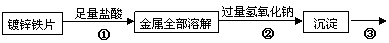 步骤③的操作是 ;若使用的镀锌铁片的质量为28.156g ,最后称得灼烧后固体的质量为40.000g,镀锌铁片的长5.10cm,宽5.00cm,锌的密度ρ =7.14g/cm3 ,则锌镀层的厚度为 cm。
