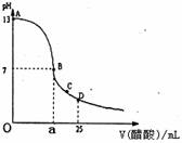 B.在B点,a>12.5,且有: c(Na+) = c(CH3COO-) > c(OH-) = c(H+)