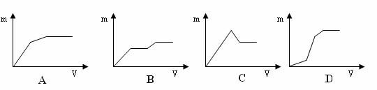 22.(南汇一)在含有4molHCl和1molMgSO4的混合溶液中逐滴加入Ba(OH)2溶液,产生的沉淀质量m与加入Ba(OH)2溶液体积V之间的关系,可能是下图中的 (纵坐标表示沉淀的质量,横坐标表示氢氧化钡溶液的体积)B