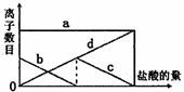 (闸北一)向一定量的K2CO3溶液中缓慢地滴加稀盐酸,并不断搅拌。随着盐酸的加入,溶液中离子数目也相应地发生变化。如图所示,四条曲线与溶液中的离子的对应关系,完全正确的是