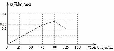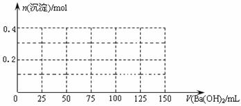 ②请在下图中画出生成沉淀的物质的量与加入Ba(OH)2溶液体积的关系示意图。